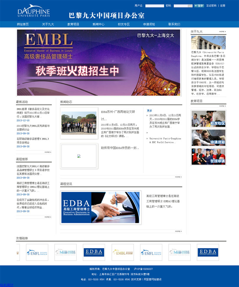 巴黎九大(Université Paris Dauphine,中譯又名巴黎-多芬納大學(xué))是法國(guó)唯一一所獲得歐洲管理發(fā)展基金會(huì)(EQUIS)認(rèn)證的綜合大學(xué),學(xué)校位于巴黎16區(qū),現(xiàn)有9000名法國(guó)學(xué)生和外國(guó)留學(xué)生、以及1500名進(jìn)行繼續(xù)教育的管理人員。