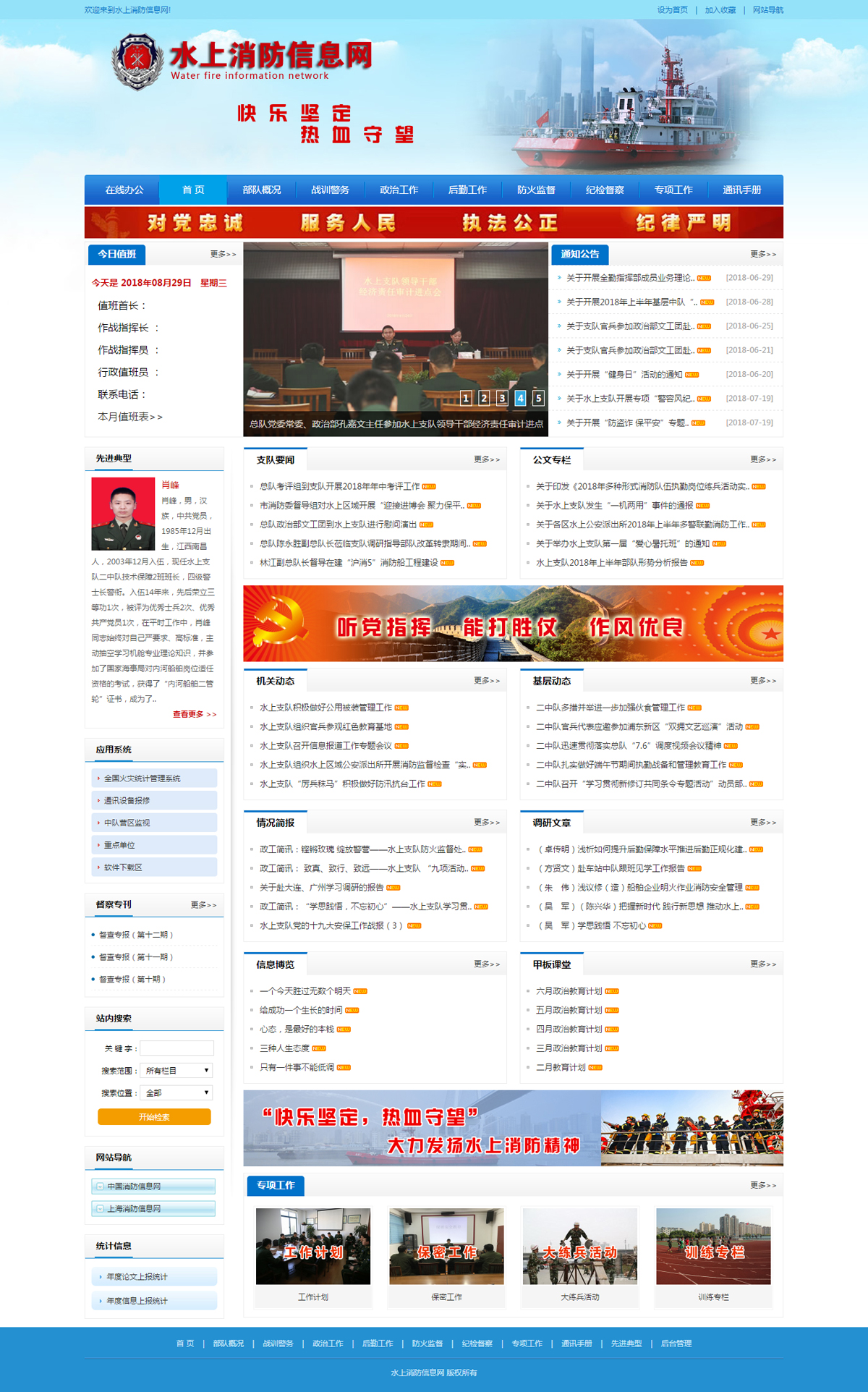 上海市水上公安消防支隊位于上海市世博大道176號,是一支全天候、全時制為黃浦江發(fā)展和市民群眾安居樂業(yè)提供消防安全保障的公安現(xiàn)役部隊。